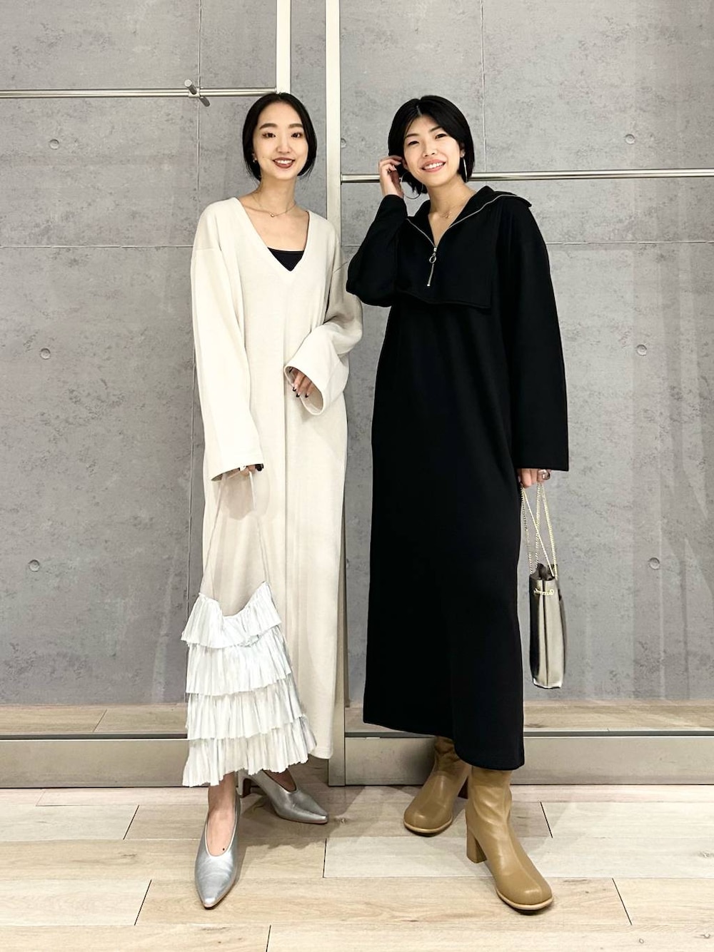 いつもご覧頂きありがとうございます✨☺️ フォローもして頂けると、とっても励みになります! はじめてyopieさんと撮ってみた🤳 顔ちいさ…憧れの方と撮れて至福の時間でした笑笑 同じワンピースを着回してみたので、 ぜひ参考にしてください! 私はハーフジップの襟付きにして、 yopieさんは襟なしでタンクと合わせて着てみました。 とにかく鎖骨が綺麗に見えるワンピース!! ただ、首が開くデザインが苦手…という骨格ウェーブさんも、ジップをぎりぎりまで上げれば、首元開かずに切られるので、骨格関係なしに使えるアイテムです✨ 暑がりの私でもサラ〜っと着ることができて、汗ばむことなく着られました(感動)。襟が大きめなので、小顔効果もありますよ🤝(小顔になっていると信じ込むのも大事) ︎ ✨LEPSIMインフルエンサースタッフ✨