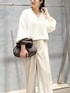 いつもご覧頂きありがとうございます✨☺️ フォローもして頂けると、とっても励みになります! 骨格ストレートさんが大得意なVネックカーディガン。首周りをすっきりと長く見せることができて、品良く着られます。骨ストさんとは真逆の骨格ウェーブさんも、タートルインナーなど首元が出ないインナーを合わせると上手に着こなせますよ!春ニットの特徴的な、サラッとした生地感で、これから大活躍しそうです。 パンツは、実は一つ前に投稿したセレモニーのワイドパンツを履いてます。普段着使いだって難なくできちゃう🥳生地がストンと落ちるので、脚のラインがとても綺麗に見えます。162㎝くらいの身長の方は、MサイズでもLサイズでもどちらの着丈も履きこなせる長さなので、ウエストでサイズを選ぶと良いと思います! ︎こちらもぜひご覧ください💁🏻♀️ Instagram→ @mi_lepsim WEAR⇨@エムアイ