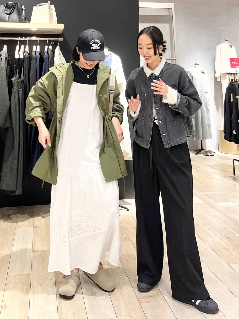 いつもご覧頂きありがとうございます✨☺️ フォローもして頂けると、とっても励みになります! ジャケットは、かなりオーバーサイズ。メンズの方でも着られるサイズ感です。このゆるっとしたシルエットが可愛いんです…🤍パリッとした生地感で、カジュアルさとミリタリー感が強めです。お尻も隠れる着丈なので、後ろ姿も安心です! キャミワンピは、よーく見るとスカート部分にレースが👀甘々には見えず、春の軽さを感じるデザインです。膝下までペチコートが付いているので、透け感も抑えられて安心。綿100%素材だからなのか、静電気も気になりませんでした。 WEAR⇨@エムアイ