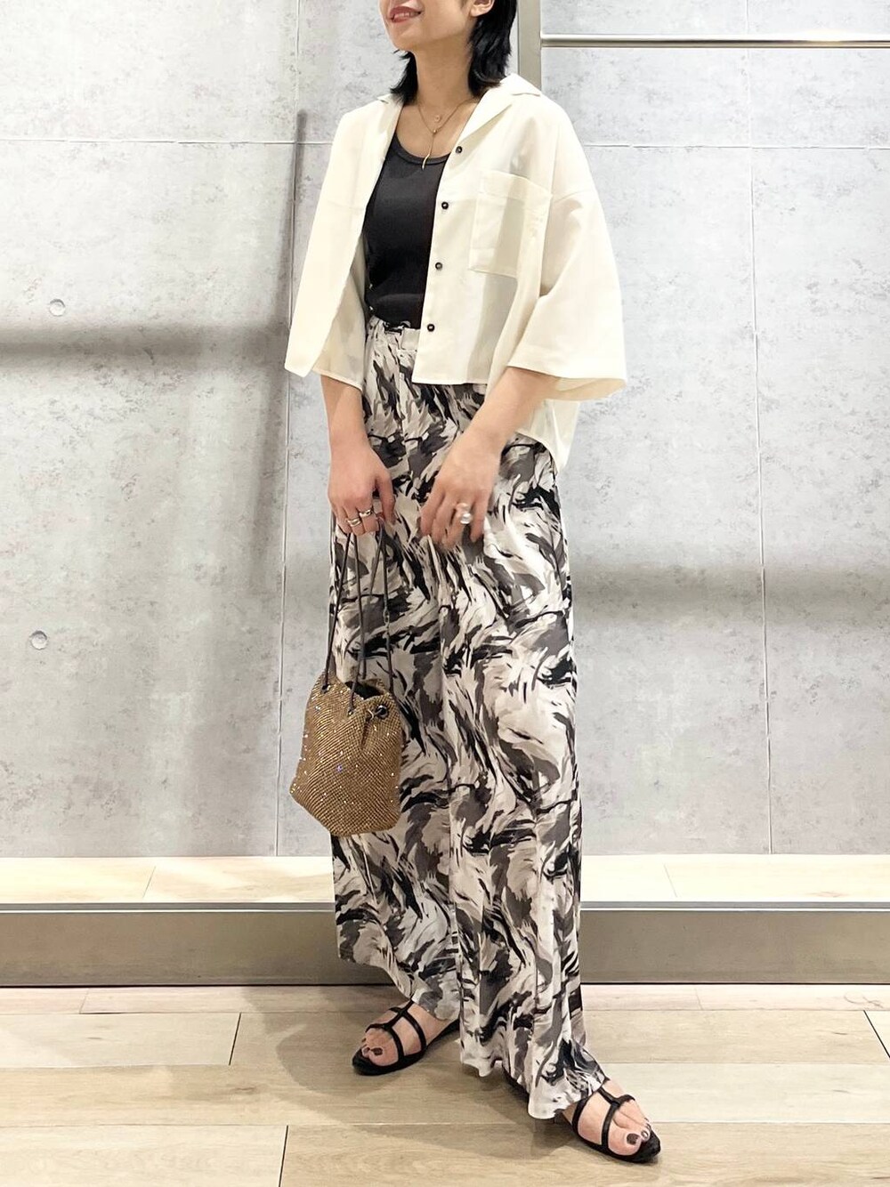 エムアイ(LEPSIM 阿倍野キューズモール店)のショルダーバッグ「ストーンメッシュミニショルダー 103821」を使ったコーディネート