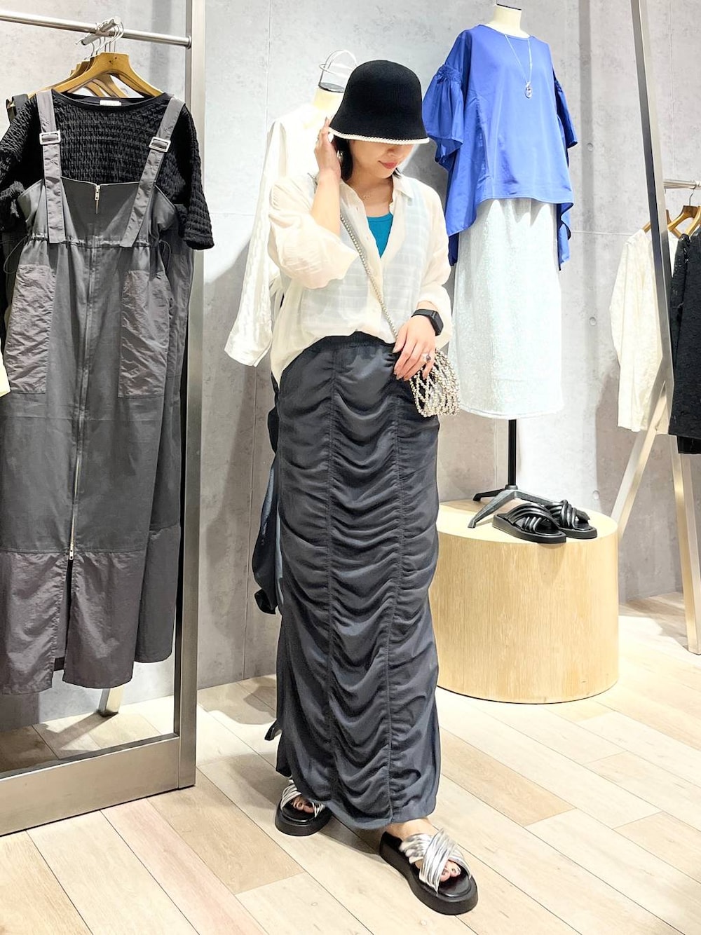 エムアイ(LEPSIM 阿倍野キューズモール店)のスカート「異素材シャーリングスカート 116750」を使ったコーディネート