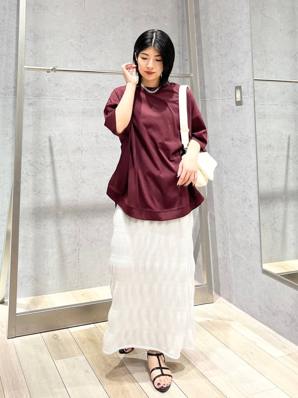 裾ラウンドチュニックの晩夏カラーが登場🍂🍠 ボルドーはブルベ冬さんが得意なカラー。 ブルベ冬の私も試しに着てみましたが、 顔映りがハッキリとして、肌の色がやや トーンアップしたように見えました✨ 汗ジミも表に出ないような加工がされているので、 夏の暑い季節にぴったりです! スカートは、ポコポコとしたデザインのお陰で 脚のラインを上手くぼかしながら 楽に着ることができます。 後ろ側にスリットが入っていますが、 思っていたよりは脚見えないな、と感じました。 (⬆️1周ぐるっと動画ご覧ください!) ▽▽▽▽▽▽▽▽▽▽▽▽▽▽▽▽▽▽▽▽▽▽▽ いつもご覧頂きありがとうございます🙌 ポチッとフォローしてねー! WEAR⇨@エムアイ