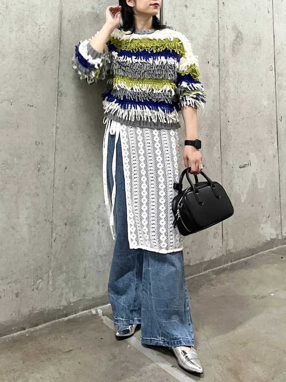▽▽▽▽▽▽▽▽▽▽▽▽▽▽▽▽▽▽▽▽▽ これはブランド会議でも 特に注目度が高かったニット。 お客様からのお問い合わせも 連日頂いている商品です♡ 他にはないモンスターのようなデザインと チクチクしない生地感で、 秋冬のスタイリングに欠かせない アイテムとなっています🤍 デニムは、シルエットが美しくて 思わずリアルバイしちゃいました! セミフレアデニムパンツと比べると、 若干ウエストゆるめで着丈も長め。 Lサイズを履いたら少し大きく感じたので、 Mサイズを購入しました👖 足がスラッと綺麗に見えるシルエットで 本当におすすめです! ▽▽▽▽▽▽▽▽▽▽▽▽▽▽▽▽▽▽▽▽▽ いつもご覧頂きありがとうございます🙌 フォローしてくださると とーーっても嬉しいです🥹✨ WEAR⇨@エムアイ