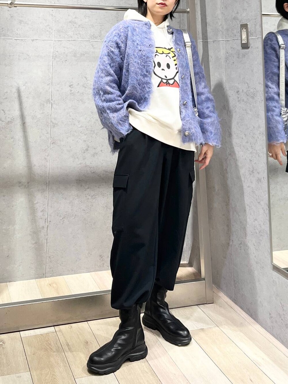 ▽▽▽▽▽▽▽▽▽▽▽▽▽▽▽▽▽▽▽▽▽ OSAMU GOODS×LEPSIM 第2弾🎉 パーカーとカーディガンを合わせてみました! パーカーのイラスト、ドットで描かれていて どこか懐かしさを感じます😀 ゆったりとしたオーバーサイズですが、 裏毛なのでモコモコしませんでした。 カーディガンは、中にオーバーサイズの パーカーやスウェットを重ねても 余裕で着れちゃうくらいゆとりがあります。 アウター感覚で着られる方も多いですよ! チクチク感はなく、 むしろフワフワで気持ち良いです🙆 サイドポケットパンツを、ブーツにインして 少しメンズライクな雰囲気で着てみました。 落ち感があるトロッとした生地感はレディな感じ。 生地は厚すぎず薄すぎずで、 1年通して着られる厚みです! ▽▽▽▽▽▽▽▽▽▽▽▽▽▽▽▽▽▽▽▽▽ いつもご覧頂きありがとうございます🙌 フォローしてくださると とーーっても嬉しいです🥹✨ WEAR⇨@エムアイ