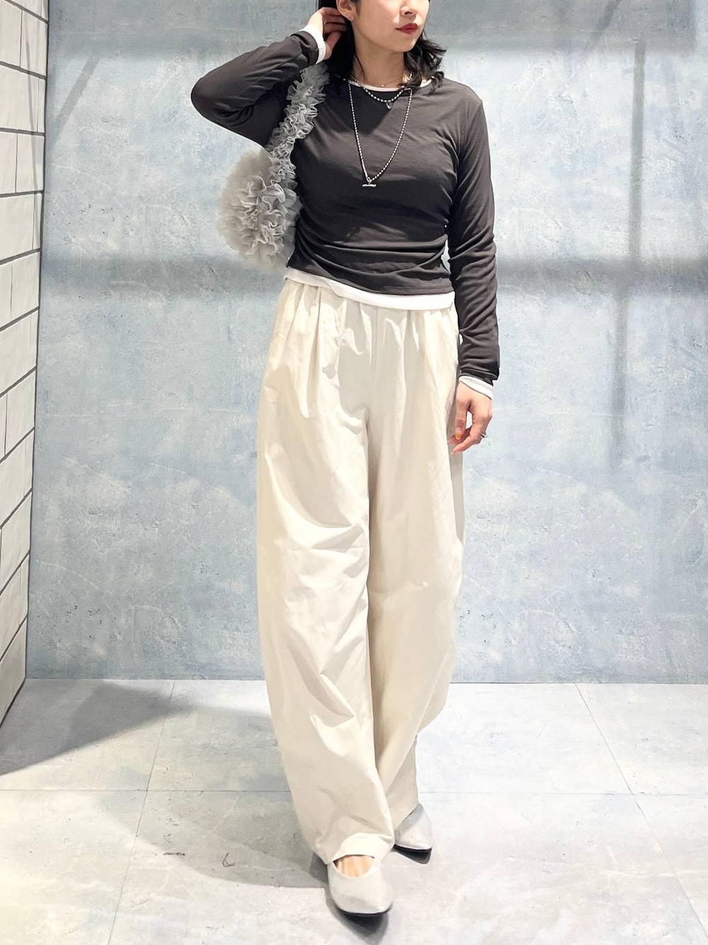 エムアイ(LEPSIM 阿倍野キューズモール店)のネックレス「ステンレスボールハートネックレス 137922」を使ったコーディネート