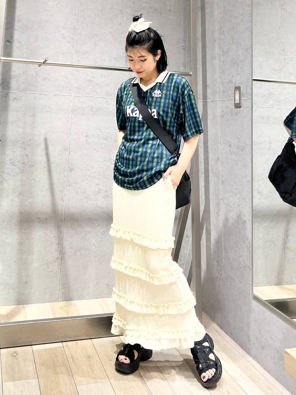エムアイ(LEPSIM 阿倍野キューズモール店)のマタニティウェア/グッズ「【産前・産後対応】マタニティ/フリルティアードスカート 319491」を使ったコーディネート