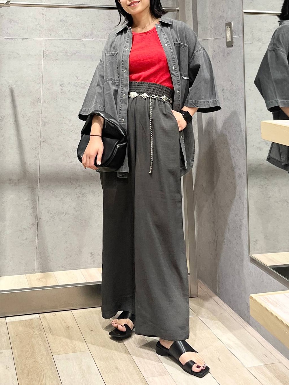 エムアイ(LEPSIM 阿倍野キューズモール店)のシャツ/ブラウス「BIGデニム5分袖シャツチュニック 242829」を使ったコーディネート