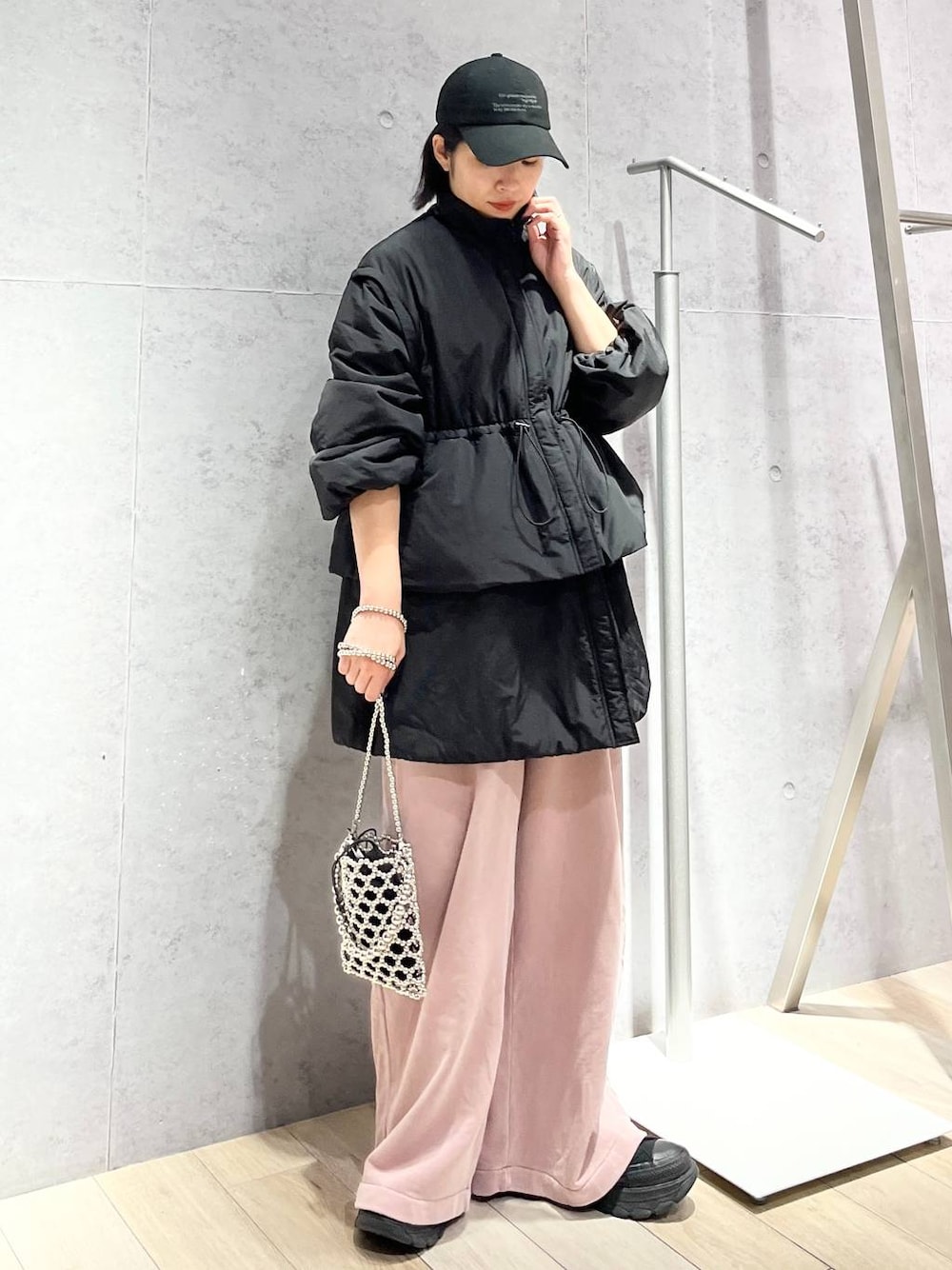 エムアイ(LEPSIM 阿倍野キューズモール店)のショルダーバッグ「ビーズショルダーミニバッグ 324877」を使ったコーディネート