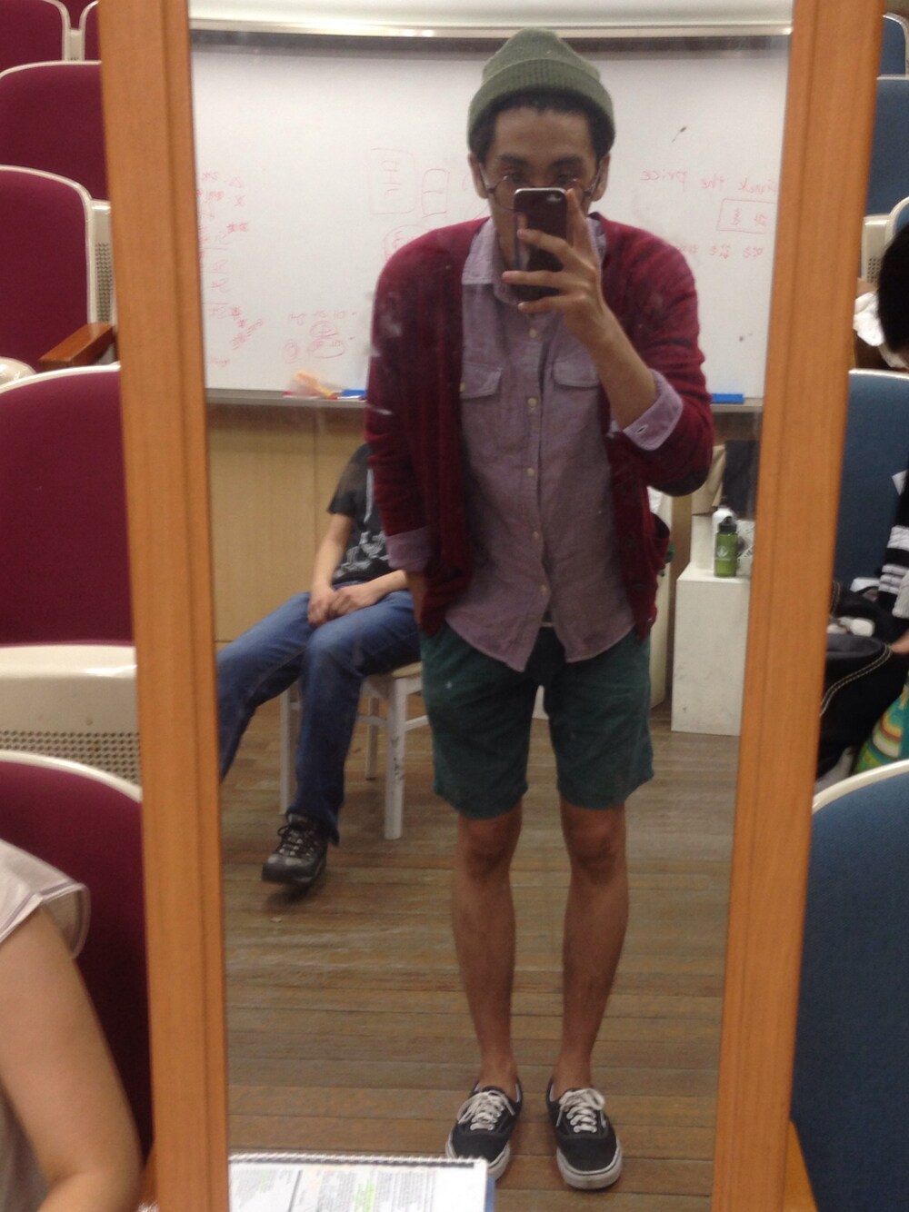 ブラック系のスニーカーを着用したメンズの秋コーディネートの1枚目の写真