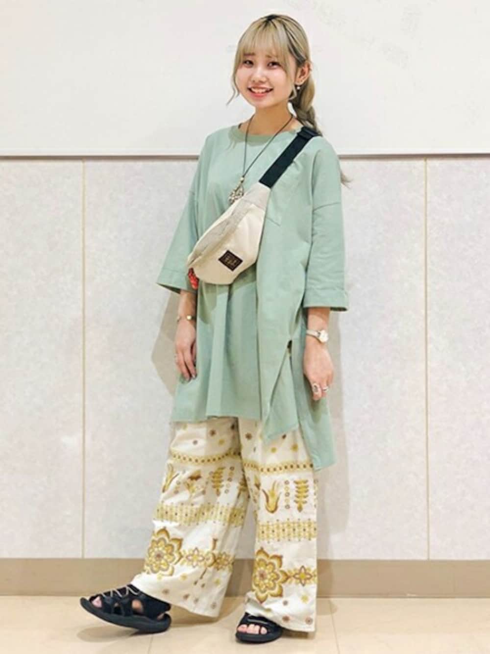 シンプルなトップスには刺繍のパンツでお洒落に☆