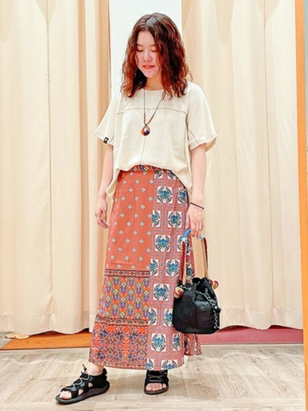 綺麗なAラインのシルエットとさらりとした生地感で上品な着こなしができます♡ トップスもシンプルだけどワッフル素材で優しい肌触り♪