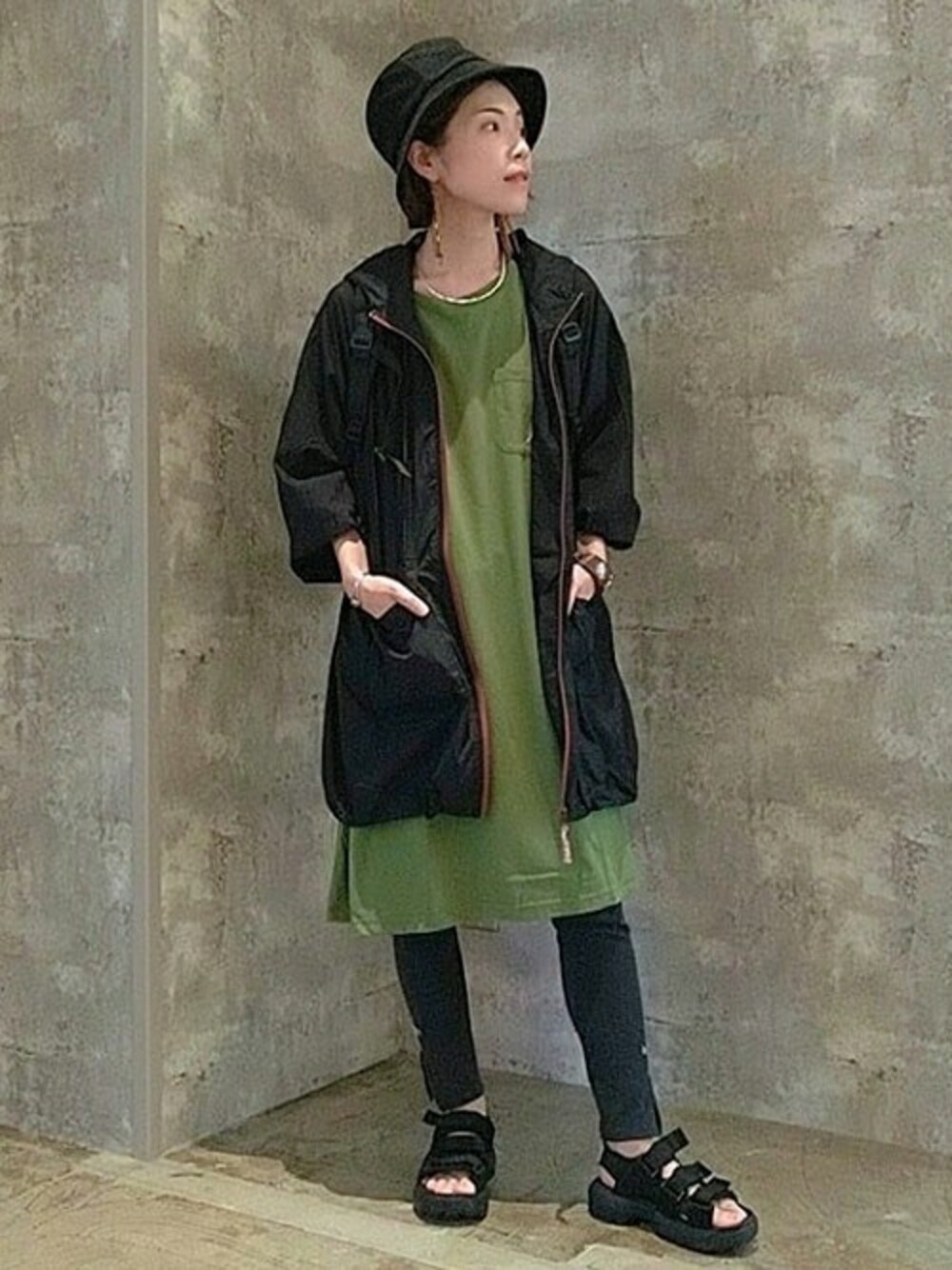 アクティブに外遊びする時にオススメなアウトドアコーデ☆ 持ち運びに便利な撥水ポケッタブルジャケットは軽い羽織に便利なアイテム♪ インナーのKappaコラボホルターネックワンピースは吸汗速乾なのでアウトドアシーンには嬉しいです♪