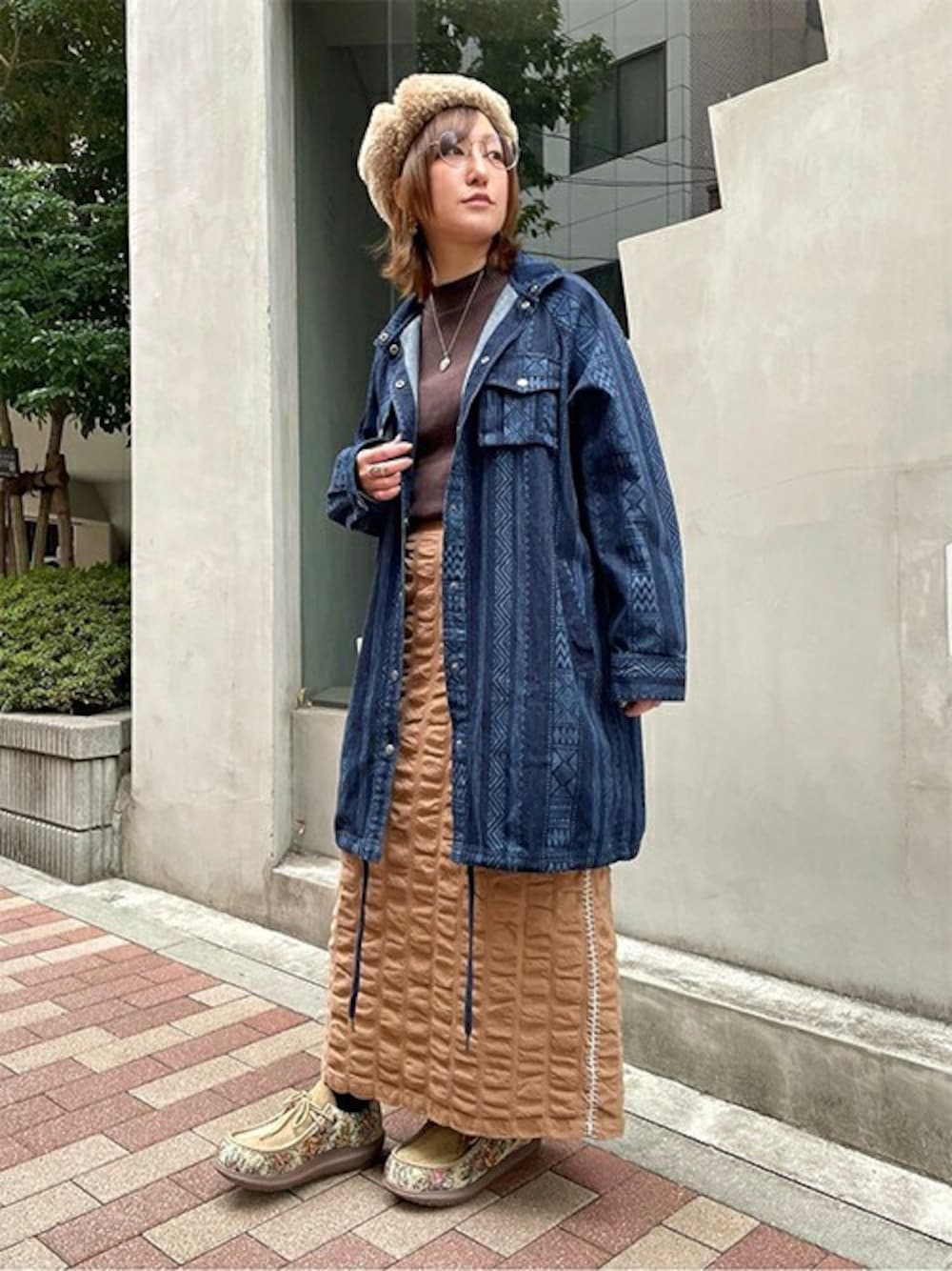 男女兼用で着られるデニムジャケットを主役に、インドからやってきた味のあるシボ加工のスカートを合わせた、大人に似合うカジュアルコーデ🌞💙🇮🇳 シャツライクなジャケットはざっくり羽織れるので秋や春には軽アウターとして使えて着回し力抜群🙌 一着持ってるとめちゃくちゃ活躍しますよ◎ メンズっぽくになりすぎないようにニュアンス感のあるスカートで調節〜!