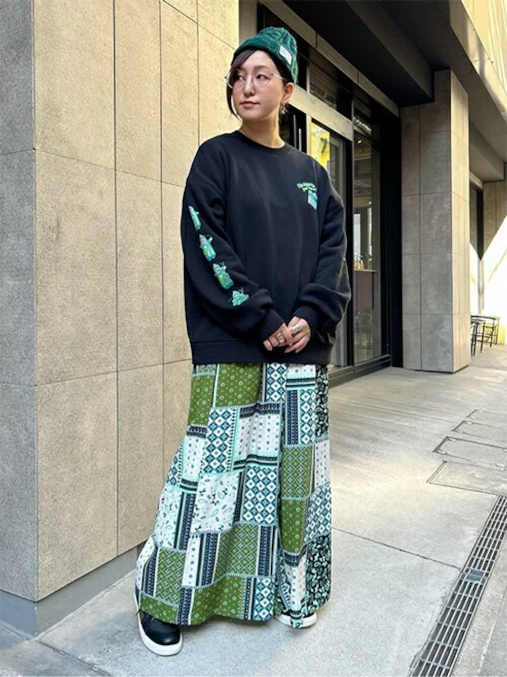 \エケコ人形って知ってますか?/ 南米ペルーやボリビアで「福の神」と伝わる願掛け人形のことで、自分の欲しいもののミニチュアを持たせて、タバコをあげれば願いが叶うとか🤲💭 そんなエケコ人形が袖にプリントされたおちゃめなプルオーバーで、ポップなグリーンコーデ🫛★ ブラックが効いてメリハリ抜群です✊ 胸のクールなタバコのワンポイントにも注目です👀 南米好きの方、カジュアル好きの方、愛煙家の方… ぜひCHECKしてみてくださいネ💓