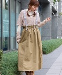 サスペンダーを取り外しベーシックなスカートとしても、サスペンダーの裏面の柄を見せた使い方もできます! ブラウスやスウェットとの相性も抜群です♩