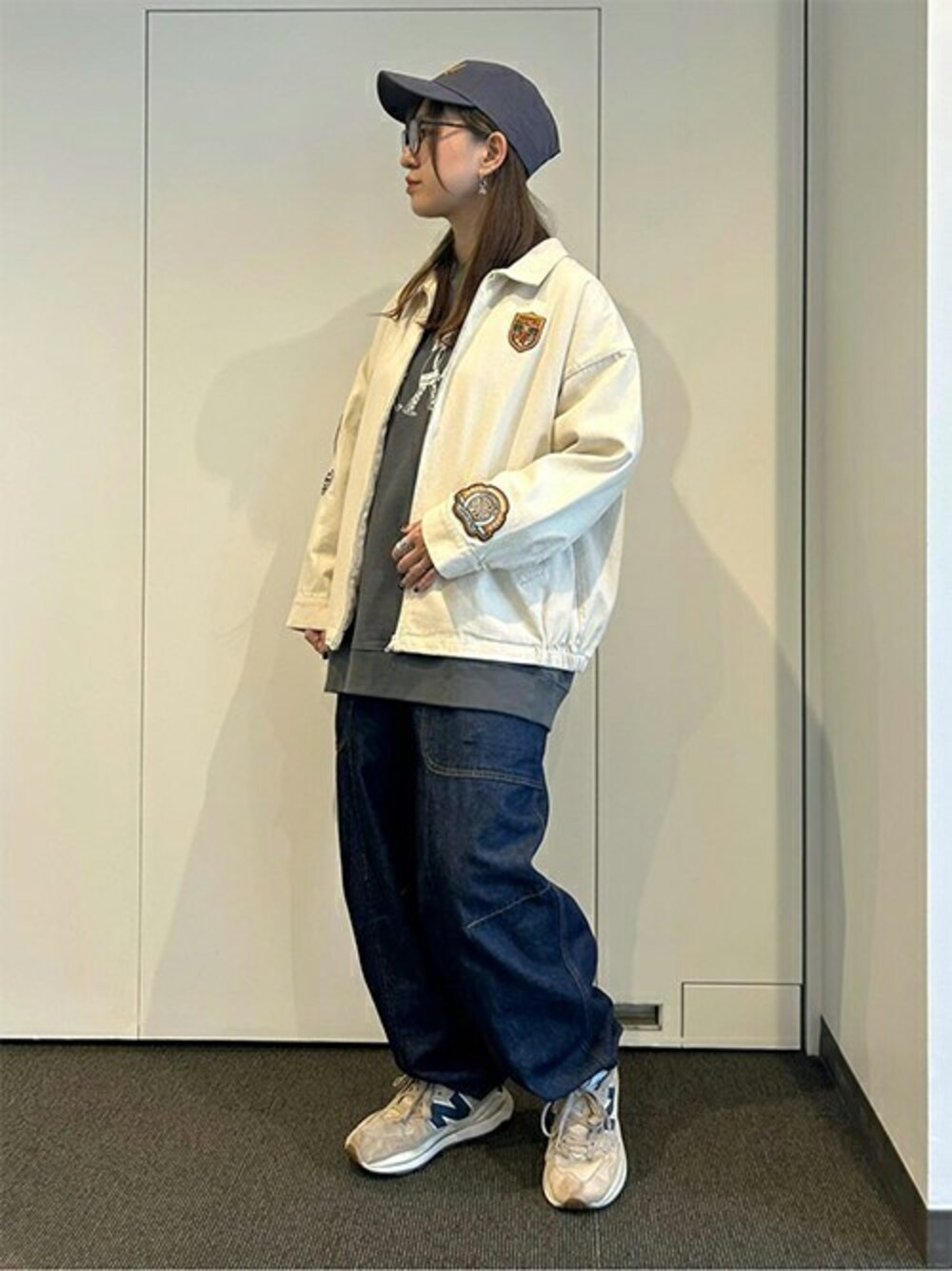 ワッペンとバックプリントがイケてるジャケットを羽織ったカジュアルコーデ👊★ フロントはボタンじゃなくてジッパーなのでスッキリ見えます! インナーにスウェットやニットを入れてもごわつかないサイズ感と裏地の質感がよき🙆♀️♩ ネイティブアメリカンの人たちが連なって歩くプリントが可愛いインナーは薄手の裏毛スウェットでロングシーズン着られます🌿 そしてそして、ボトムスは私が大好きな形のデニム👖💓💓(今期も出ました!) 間違いなくこなれた感じになる絶妙にゆるいシルエットが超絶推せます❤️🔥 ‥‥‥‥‥‥‥‥‥‥‥‥‥‥‥ 身長:160cm / 年齢:30代前半 骨格:ウェーブ / パーソナルカラー:ブルベ秋? ‥‥‥‥‥‥‥‥‥‥‥‥‥‥‥ ■着用サイズ すべての衣料:フリーサイズ シューズ:24.5cm ■サイズ感 アウター:ゆったり トップス:ゆったり ボトムス:ゆったり ‥‥‥‥‥‥‥‥‥‥‥‥‥‥‥