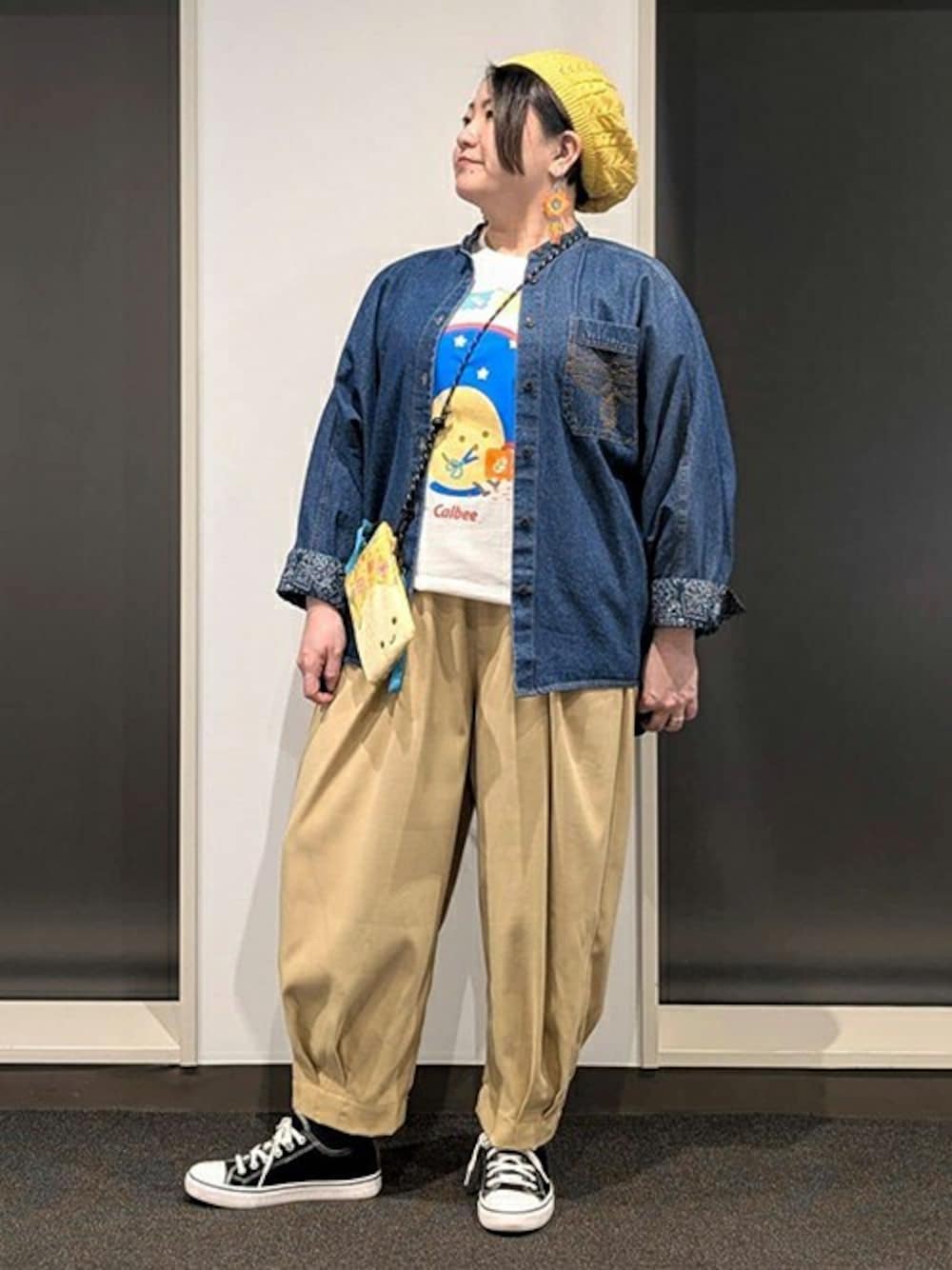 * . * . * . * . * . * .* . * . * . * . * . * .* . * . * . * . * . * 身長 153cm 30代前半 骨格ストレート L〜LLサイズ体型のぽっちゃり女子 腰回りしっかりしてます バストがコンプレックス * . * . * . * . * . * .* . * . * . * . * . * .* . * . * . * . * . * 🌵着用サイズ&着用感🌵 Tシャツ/FREE 程よくゆったり シャツ/FREE ゆったり パンツ/Lサイズ ゆったり シューズ/Lサイズ ゆったり 🌵コーデのポイント🌵 頑張れ🎉キマルくん応援コーデ💛💛💛 カルビーのお菓子 miino(ミーノ)とチチカカコラボアイテムが登場! 今回初コラボとなったキマルくんがお気に入りの私はキマルくんコーデを組んでみました😍 まんまるフォルムがとっても可愛いんです😍😍 特にお気に入りなのはスマホショルダーポーチ🥹 ふわふわのキマルくんがとっても可愛くてずっと撫でていたくなります🧡🧡 🏵️About me...🏵️ ラテンアメリカが好きすぎてメキシコへ留学、就職。 メキシコ人の旦那さんを連れて日本に移住してきました❤️ パグ犬のわさびと3人家族です✨ メキシコのことスペイン語の事ならおまかせ👍 たまにトピックスコーナーで文化などに関するコラムなども書いてます📝 趣味は筋トレ、暗闇バイクサイクルジムに行くことです🚴♀️ 筋肉ムキムキになりたいー!