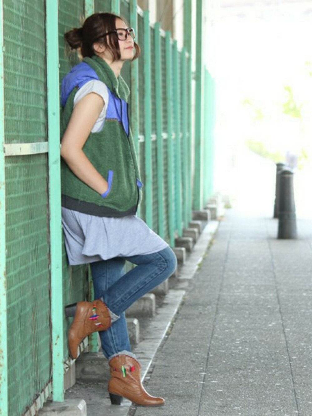 秋のスタイルに大活躍するボアベスト。暑さが残るこの季節は半袖に合わせてちょっぴり季節を先取り。スポーティな雰囲気のあるアイテムも、ワンピとブーツに合わせて女の子らしくまとめました◎