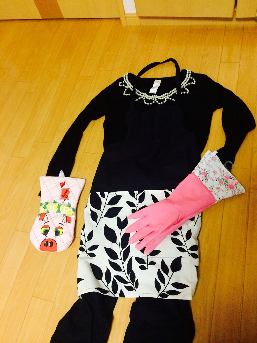 エプロン◡̈♥︎ パールのニットとブラックパンツを合わせて☆