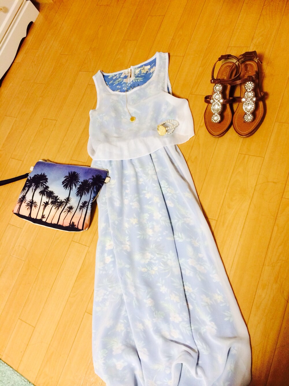 花柄ワンピ➳ ( ˙-˙=͟͟͞͞)♡" OZOCの花柄ロングワンピ(♡´∀`) ビジューサンダルに ヤシの木柄バック って…まだ夏じゃないのに 夏コーデ(*´罒`*) アクセサリーもシェルばっかり集めてる(笑) パールとか可愛い(๑˃̶͈̀ ꇴ ॣ˂̶͈́๑) ˂ᵒ͜͡ᵏᵎ⁾
