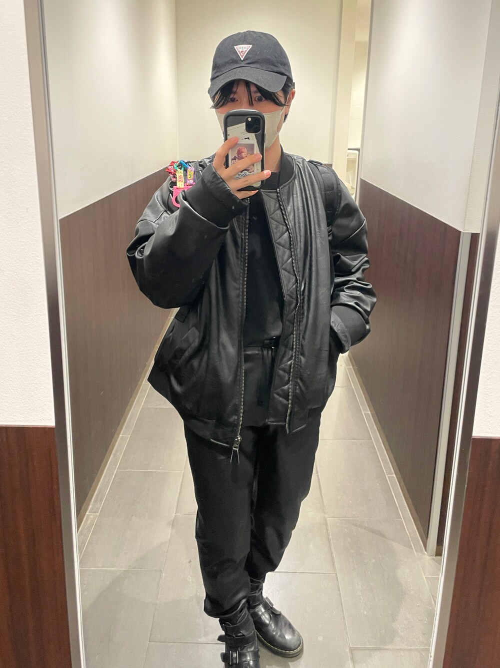 レザー系ブラックコーデ。 シックでカッコいいからこういうのも好き!