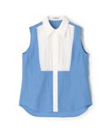 〈CABaN〉リネンシャンブレー ノースリーブボザムシャツ コンパクトなサイズ感のブラウスはリネン素材でもカジュアルになりすぎずに綺麗に着用していただけます。 ボトムスにはホワイトのクロップド丈を合わせ涼しげなスタイリングに。