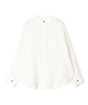 〈TOMORROW LAND .B〉ロイヤルラミー スタンドカラーシャツ ドルマンスリーブデザインのブラウスは程よく張り感もあり、涼しく快適にお召しいただけます。 インナーは〈CABaN〉のキャミソールワンピースを着用してます。