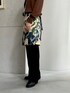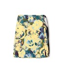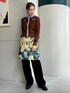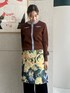 〈CABaN〉フラワージャカード リバーシブルラップスカート 柔らかいイエロー×ブルーと、ビビットなピンクベースのマルチカラーのリバーシブルでご着用いただけます。 トップスは〈CABaN〉定番のコットンカシミヤバイカラーの新色を着用してます。