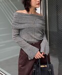 ono(ノーリーズソフィーアトレ恵比寿店)のニット/セーター「カシミヤ混ガーゼ風リブオフショルプルオーバーニット」を使ったコーディネート
