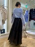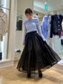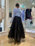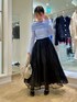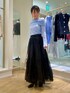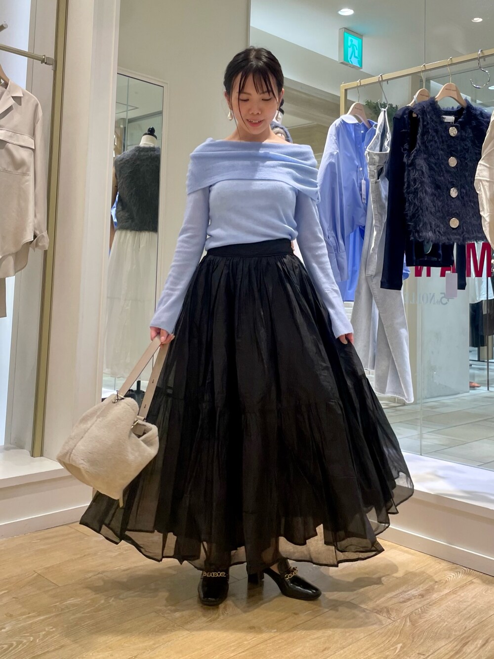 恵比寿店限定カラーのブルーのオフショルニットを、店舗限定販売の Marilyn Moon のスカートと合わせました🩵🖤 カシミヤのため、薄手でフワフワ柔らかく、全くチクチクしません。 ワンサイズですが袖は長めで、手の甲まで隠れます。 スリット入りのため、手首がチラッと見えるのもポイントです。 ニットは10月上旬に店頭入荷を予定しております。 ただいまご予約受付中です✨ 合わせたスカートはスターチ(糊付け)加工でパリッとした質感が持ち味です。 履いた時のボリュームがとても素敵なので、ぜひ店頭にてお試しいただきたい一点です。