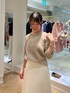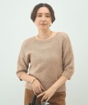 ono(ノーリーズソフィーアトレ恵比寿店)のカーディガン/ボレロ「キラキラフェザー2WAY5分袖プルオーバーニット」を使ったコーディネート