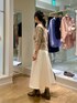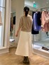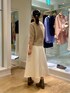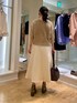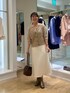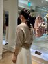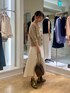セットアップも可能なダンボールニットの白スカートを、両前着用可能なキラキラニットで着回しました。 ラメ糸が使われていますが、カシミヤ混でちくちくしにくいです。 ボタン側はVネックで、首周りに抜け感が出せます。上下一つずつ外してさらにスタイルアップを狙いました🎯 ボタンを後ろに回して、被りで着るとクルーネックのプルオーバーになります。鎖骨がチラッとのぞき、バックシルエットが可愛いです🤎 コンパクトな丈なのでボリュームシルエットのボトムとの組み合わせが抜群に良いです💯 ドロップショルダーの五分袖で、肘までかくれます。 気温25℃前後に落ち着いてきたら、素肌に一枚着okです。