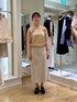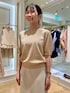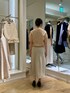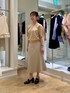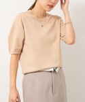 背中に縦に並んだパールが可愛い、定番人気の半袖ニットです。 ウールが含まれず、軽めの素材感なので、今なら日中は一枚着、朝晩冷え込む時間帯はジャケットを重ねて着ていただくとちょうど良いです。