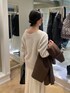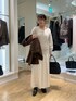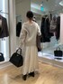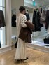 素材感や色味で重たくなりがちな秋コーデですが、淡色や異素材が軽さと動きを出してくれます。 レザー風に見えるツヤ感スカートはたっぷりギャザーで存在感抜群。 コートの裾からチラッと覗く感じが可愛いので、寒いシーズンこそ履きたいアイテムです。