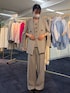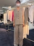ジャケットとパンツはサイズ展開があるのですが、サンプルのため38サイズを着用しています。 ジャケット+ジレ+パンツの3ピースでフォーマルなシーンやお仕事にぴったりのセットアップです。 それぞれ単体でも着回しが効くので、一揃え持っていると毎日のお仕事服に悩みません! ジャケットは隠しファスナーでスリットができるので、こなれた着こなしにも挑戦できます。 ジレはタックで女性らしいラインをとっており、ノースリーブトップスとして一枚着もできます。