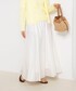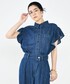 サンプルのため、スカートは38サイズを着用しています。 動きのあるラッフルスリーブが可愛いだけでなく、二の腕をカバーしてくれるデニムブラウス! 春先から着られる厚さで、夏はさらっと涼しい素材感です。 量感たっぷりなオーガンジーのフレアスカートは夏にかけて特におすすめのアイテム🌻 撮影の日、濃色のインナーを着ていて透けが少し気になったので、いつもならトップスインするところですが、オーバーで着てベルトでウエストマークしました。 素材感のメリハリで季節感を感じられるコーデを意識しました!