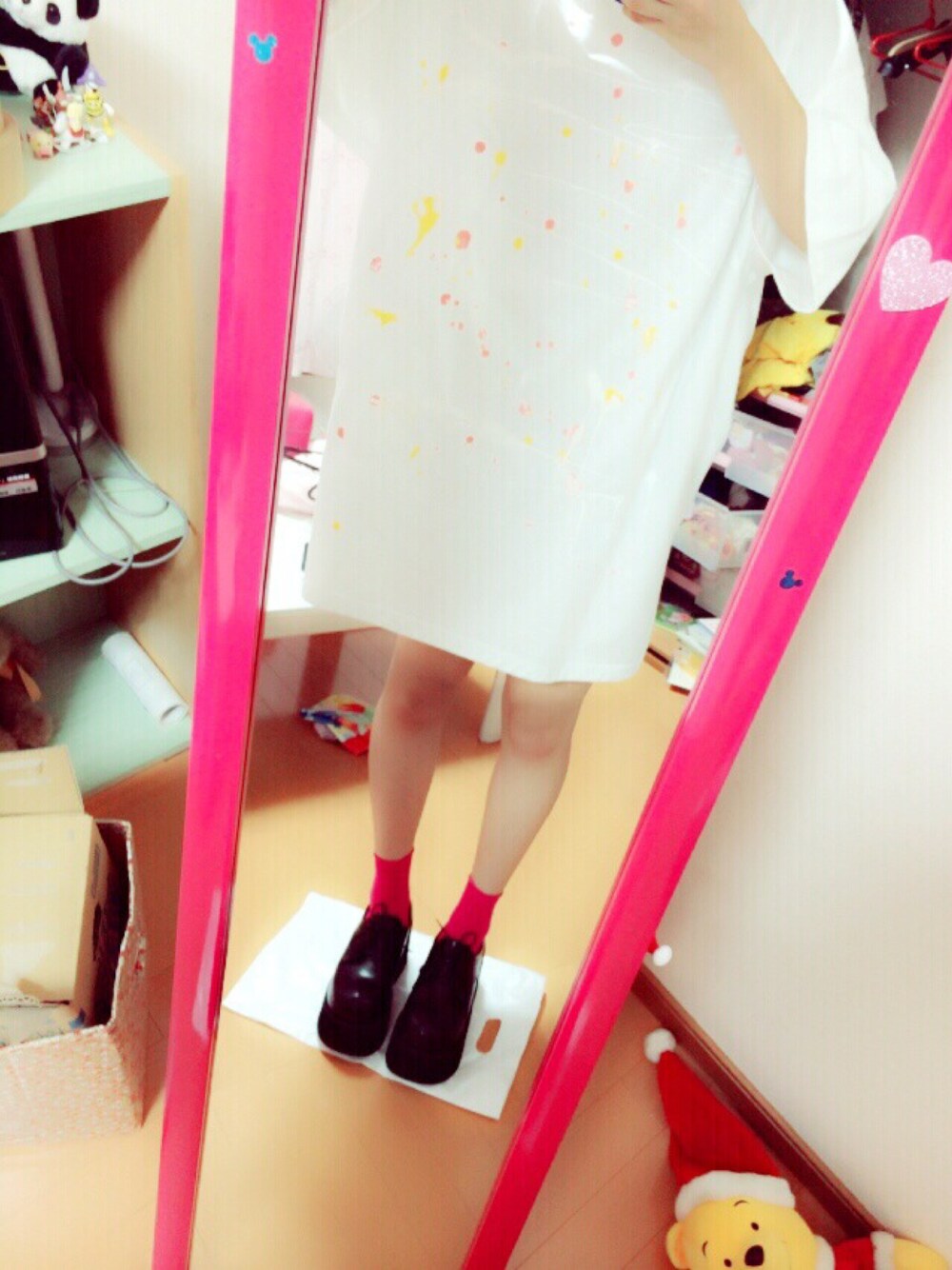 個性的なビッグTシャツ。 ゆったりと着るとカワイイ。 つま先がぷくっとした靴は私の1番のお気に入りです!