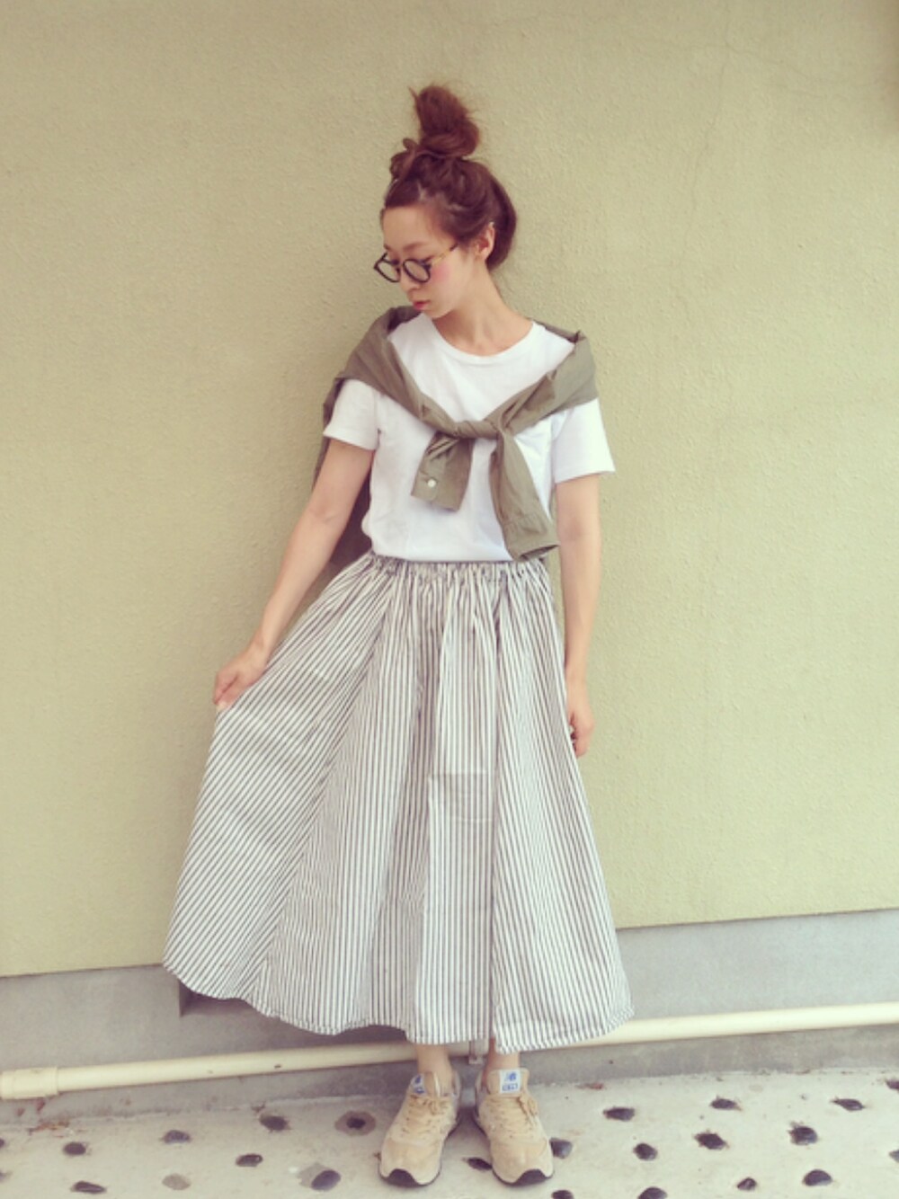ちばのぞみ。のスカート「BEAMS BOY / インディゴ ストライプ サーキュラー 1051CL」を使ったコーディネート