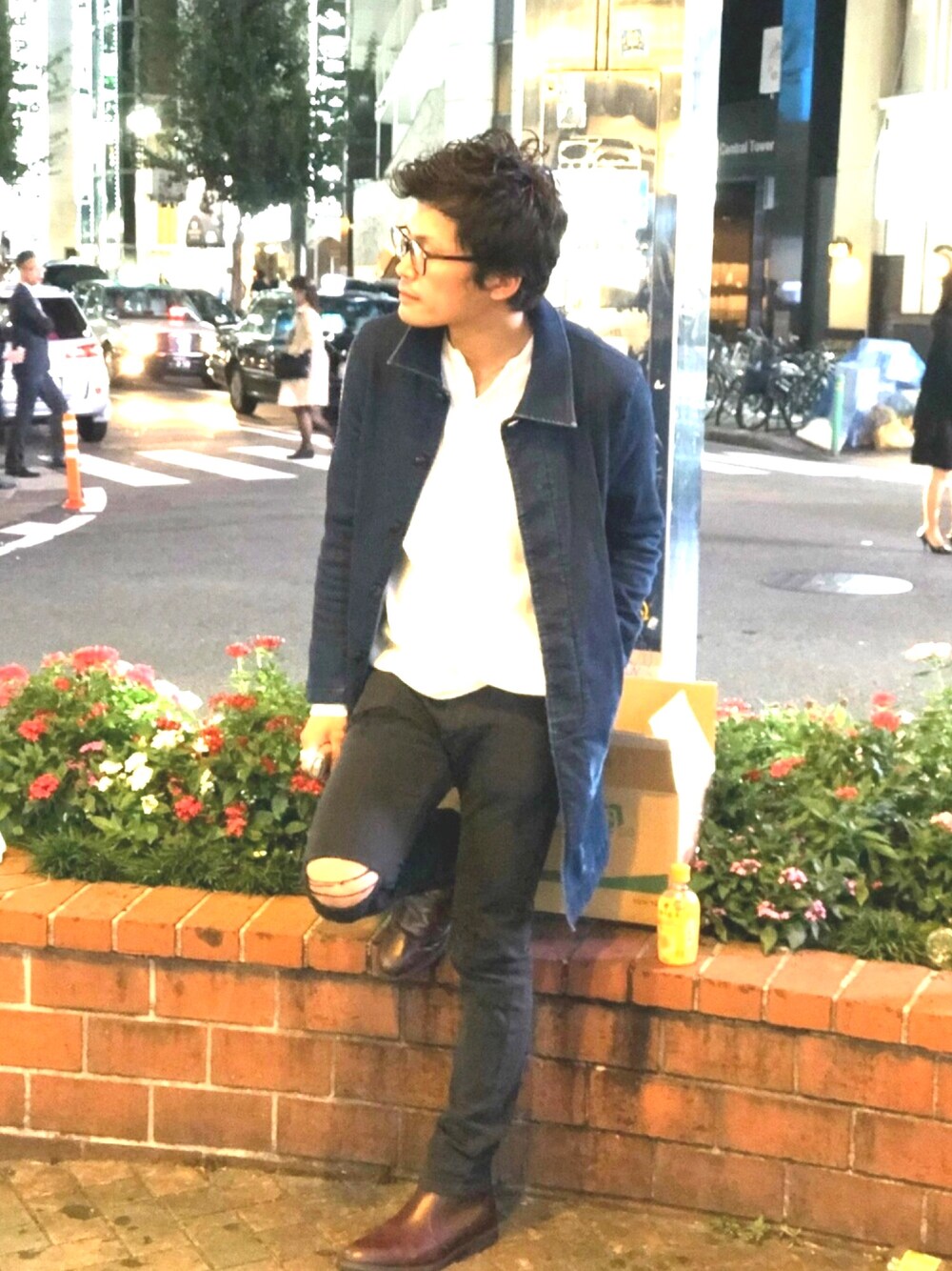 D-skのステンカラーコート「KNIT LIKE DENIM SOUTIEN/C COAT:ニットライクデニムステンカラーコート」を使ったコーディネート