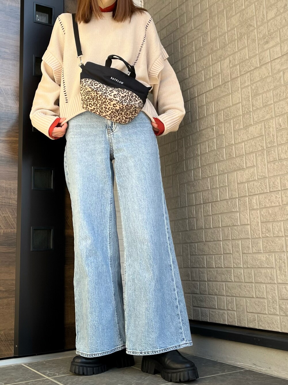 み。のブーツ「厚底ニットブーツ」を使ったコーディネート