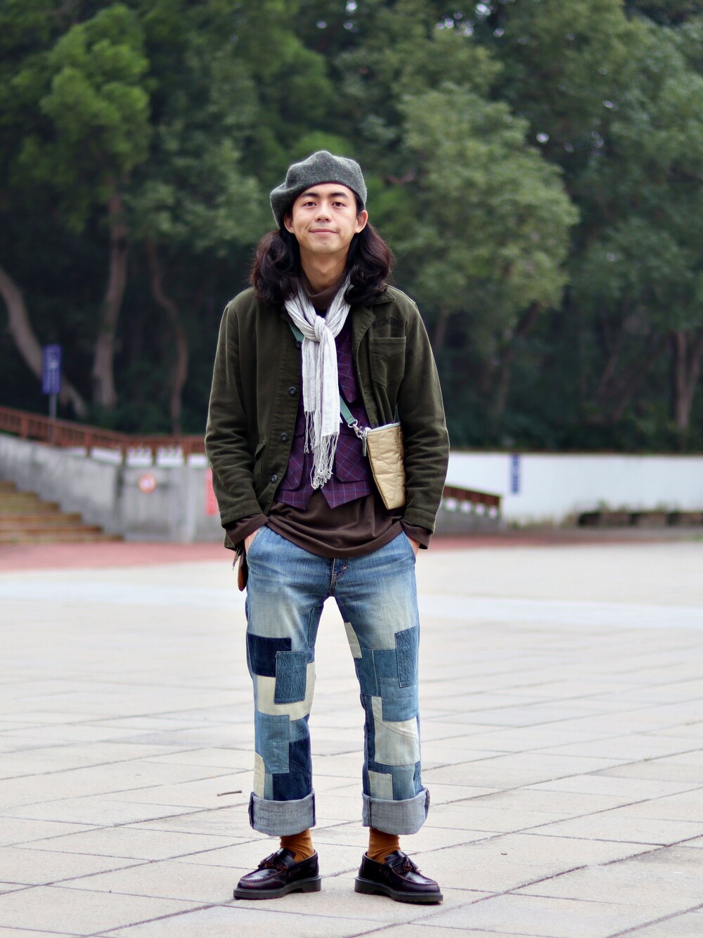 上衣、背心、外套下襬長短差, 並以圍巾和小包疊加作層次, 下身拼接牛仔褲做變化, 整身以暗色調為主軸, 紫色和橘色互補點綴整體。 感謝大家收看! ----------------------------------------------------- Facebook : https://www.facebook.com/wwwfamilybroscom Instagram: https://www.instagram.com/onuswc Youtube: http://yt1.piee.pw/CRBMF Dappei : https://dappei.com/user/familybros Website : http://www.familybros.com/ Wear : http://wear.jp/onus/