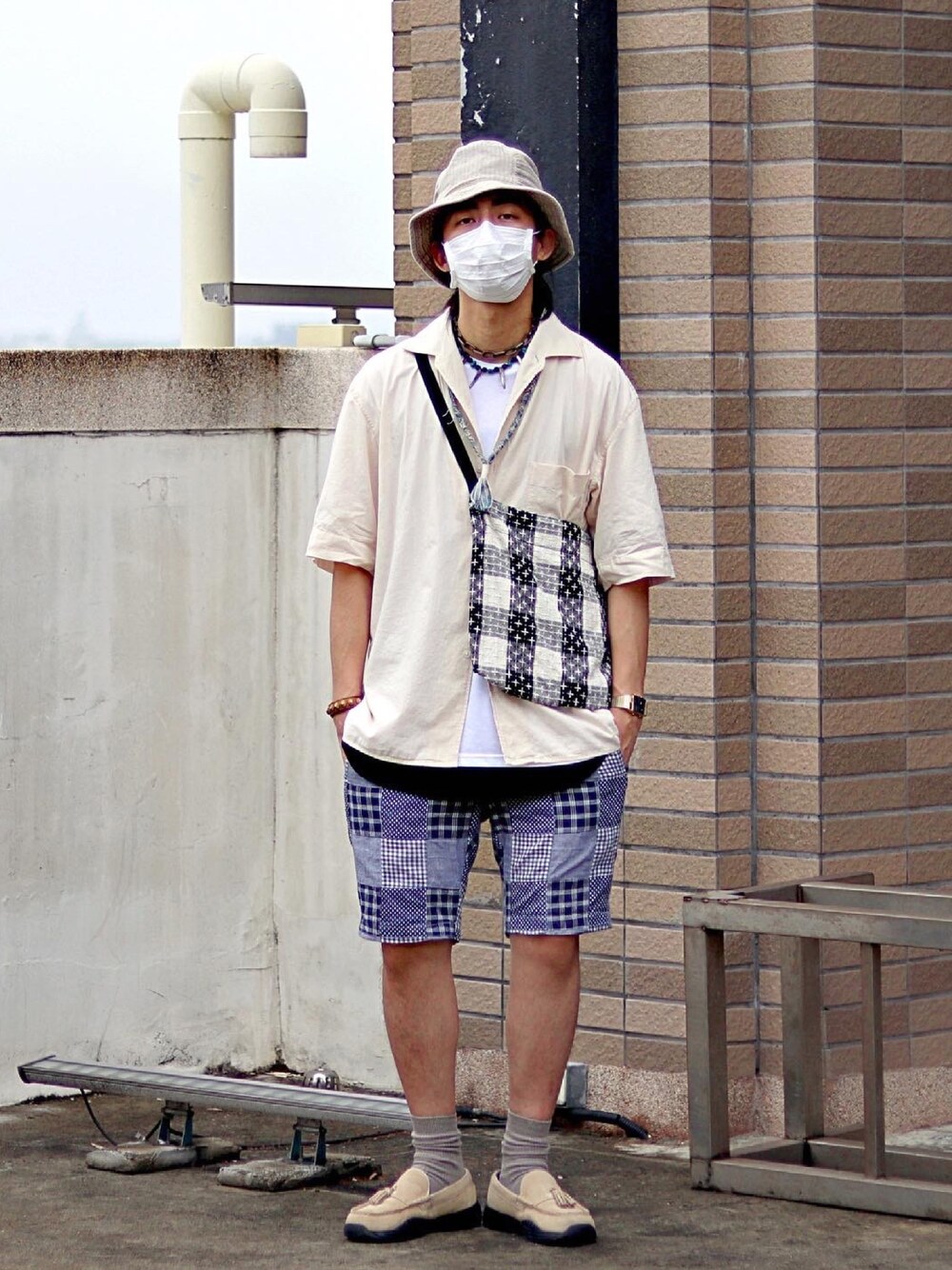 全國三級之後出門都要戴口罩, 我想我之後有好一陣子都會在頂樓拍穿搭了囧 這套上身素T、內搭、古巴領襯衫疊加, 襯衫只扣中間露出上下內搭做層次, 以米色為主體藍色圖騰褲及圖騰包做亮點裝飾, 整體是上稍微寬下合身的比例, 最後灰色襪子和灰色帽呼應協調。 感謝大家收看! ______________ Youtube : 家庭兄弟 Familybros Facebook : 家庭兄弟 Instagram : onuswc