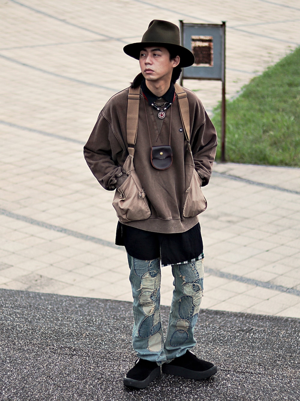 Instagram : onuswc Youtube : 家庭兄弟 Familybros 這套上身衛衣、襯衫、背心做層次, 輪廓上做上寬下合的比例, 積褲腳和厚底鞋平衡上下身分量感, 以拼接和紅色項鍊當作整體亮點。 感謝大家收看!