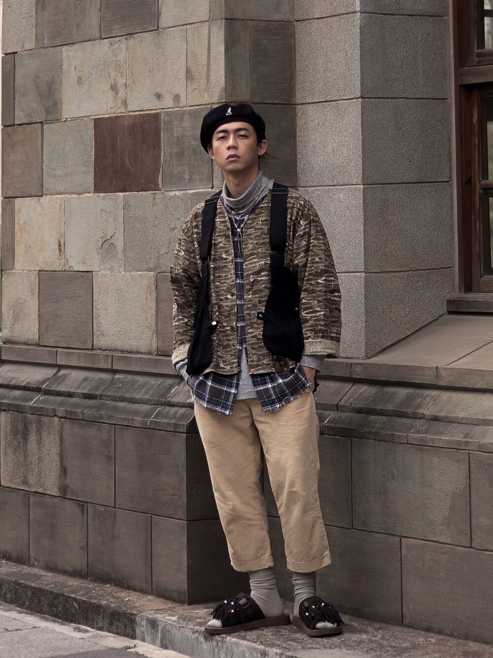 Instagram: onuswc Youtube : 家庭兄弟 Familybros 這套上身高領、外套、背心疊加 在頸部、下擺、身體處疊加層次, 整體做上寬長下合短的輪廓, 以大地色系為主並用兩種圖騰組合當作重點。 感謝大家收看!
