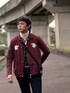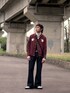Instagram: onuswc Youtube : 家庭兄弟 Familybros 這套上身高領、背心、外套疊加, 在頸部和身體處做出層次, 整體做上合短下合長的輪廓, 用上衣紮入與落地喇叭褲拉長腿線條, 色調上以紅與綠互補色組合更加凸顯彼此。