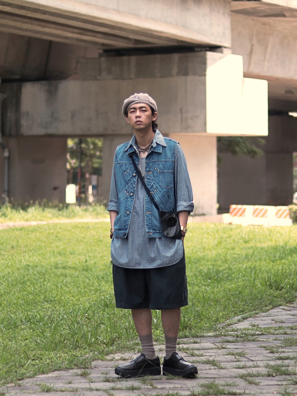 Instagram: onuswc Youtube : 家庭兄弟 Familybros 這套長襯衫、內搭、背心疊加, 在頸部領口處以及下擺長度做層次, 整體是做上合長下寬短的比例, 色系上以三種藍色組合做同色調的穿搭。 感謝大家收看
