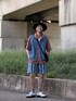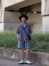 Instagram: onuswc Youtube : 家庭兄弟 Familybros 這套磚襯衫、內搭、背心疊加層次, 整體做上寬下寬短的輪廓, 色調上藍色上中下呼應, 磚紅色當作整體亮點。 感謝大家收看!