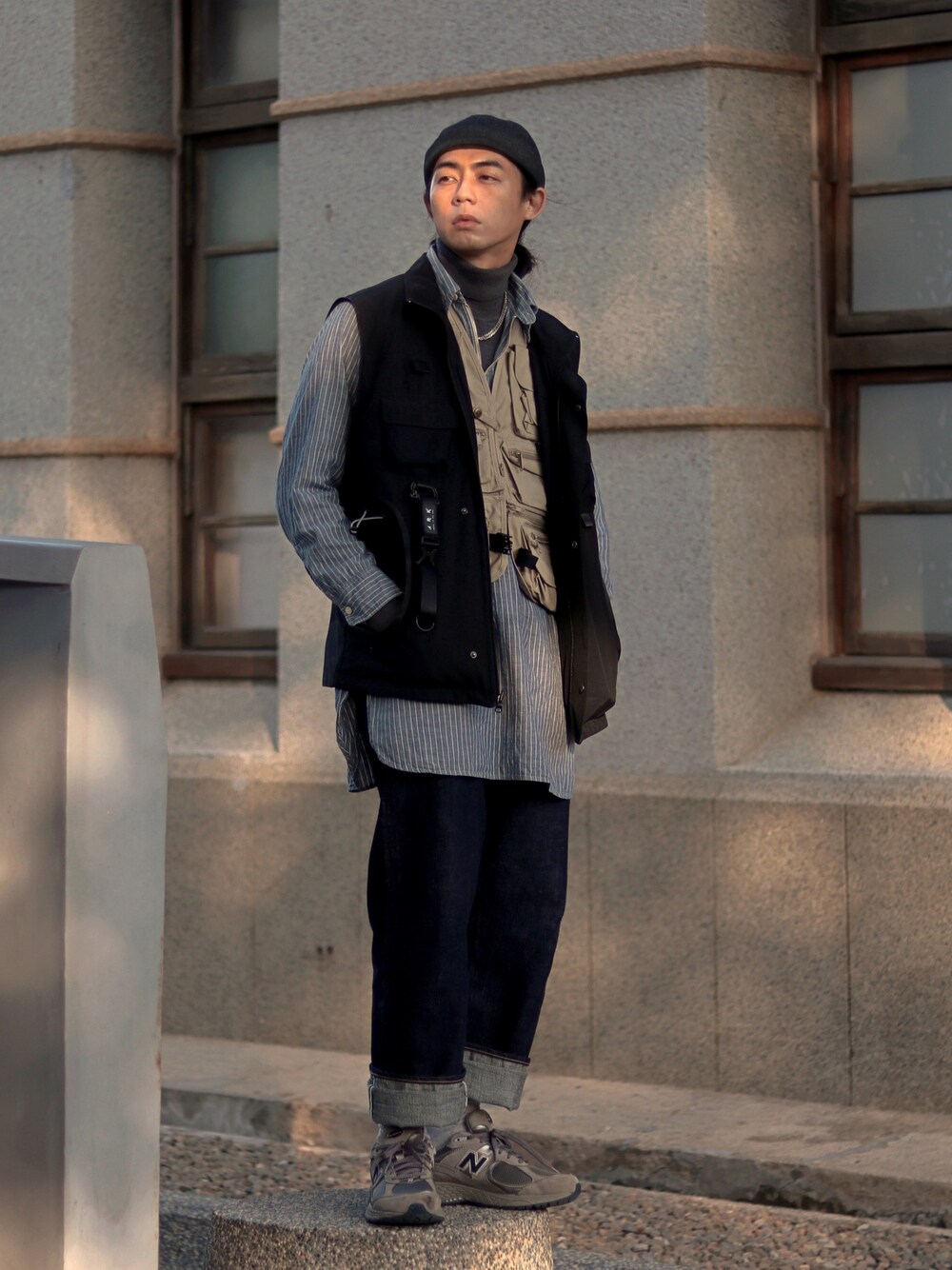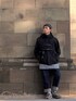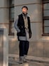 グレー系のスニーカーを着用したメンズの秋コーディネートの3枚目の写真