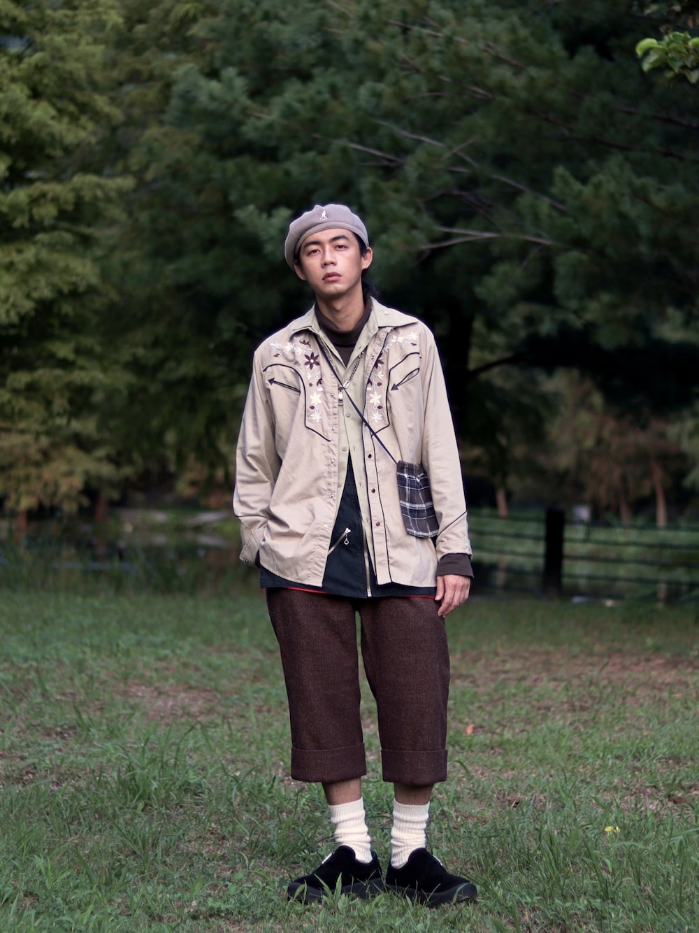 ブラウン系のパンツを着用したメンズの冬コーディネートの3枚目の写真