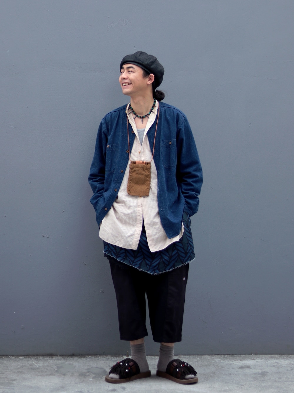 Instagram: onuswc Youtube : 家庭兄弟 Familybros 這套長襯衫露出內搭領口層次, 配上無領襯衫和長襯衫組合, 下襬加上圍裙做粗三層層次感, 七分褲露出襪子讓拖鞋更凸顯, 整體呈現些微寬鬆的輪廓, 並以藍、黑、棕當作整體的顏色組合。 感謝大家收看!